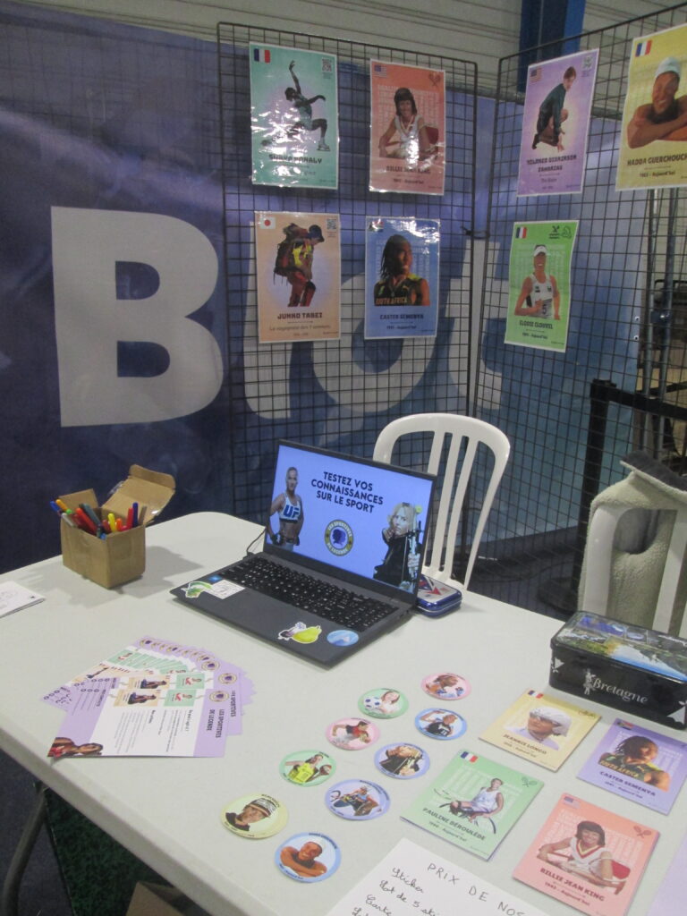 Marie Fournier, notre Présidente, a animé un quiz sur le sport féminin. Pour la première journée, nous avions choisi de tester les visiteurs sur des thématiques. Or, nous nous sommes rendus compte que les questions étaient bien trop pointu. Alors, pour la seconde journée, nous nous sommes adaptées en proposant des question plus généralistes. Cette fois-ci, nombreux ont été les personnes ayant les bonnes réponses !